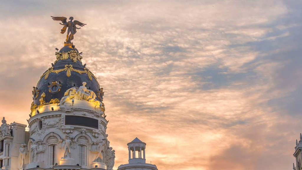 «Este es, sin duda, el lema no oficial de la ciudad. Una frase que captura el amor de los madrileños por su tierra y su famoso cielo, especialmente al atardecer, cuando el horizonte se pinta de tonos rojizos, anaranjados y azulados. «