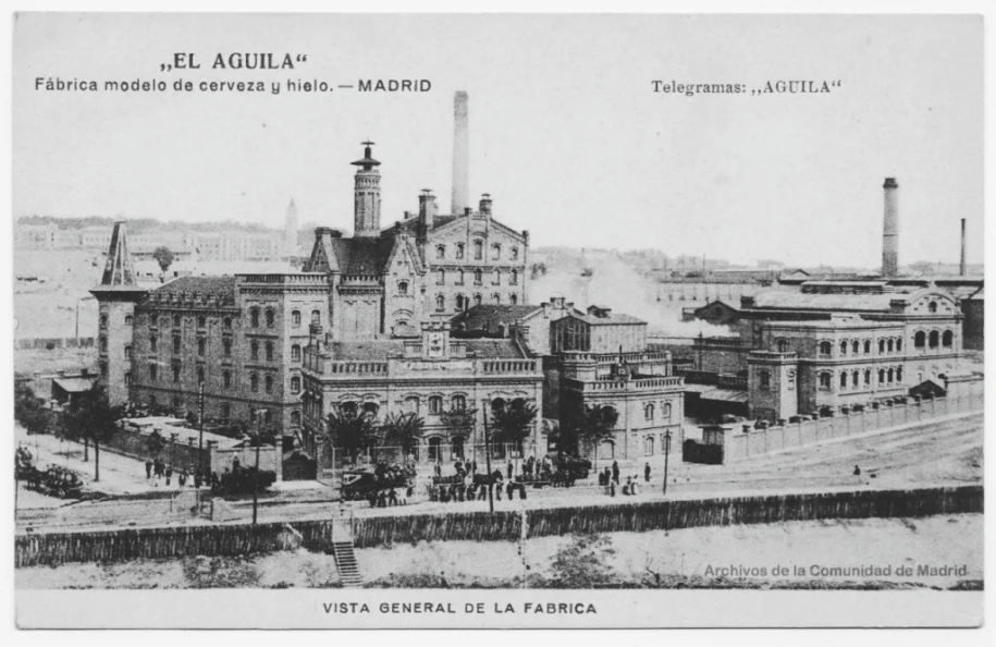 «La Fábrica de Cervezas El Águila es uno de esos lugares que han marcado la historia industrial de Madrid. Fundada en 1900 por Augusto Comas y Blanco, esta fábrica no solo produjo cerveza, sino que también se convirtió en un símbolo del empuje industrial madrileño de principios del siglo XX.»